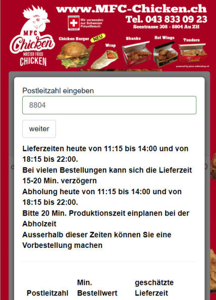 Tel. 043 833 09 23 www.mfc-chicken.ch